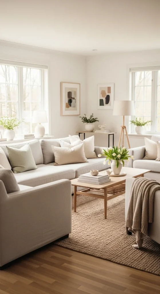 Neutral living rooms feel especially inviting during spring. Soft tones allow natural light to move freely, making spaces feel open and relaxed. With small updates like fabric swaps, light textures, and simple rearranging, a living room can feel lighter without repainting or replacing furniture. These ideas focus on simple changes, realistic DIY projects, and budget-aware styling that fit real homes and real routines.